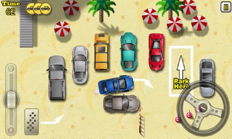 3.方向盘控制你的汽车行驶方向,左下角的竖条可以控制汽车前进后退;玩家可以通过方向盘控制汽车的行驶方向,同时通过左下角的竖条控制汽车的前进和后退,确保车辆能够准确停入指定位置。