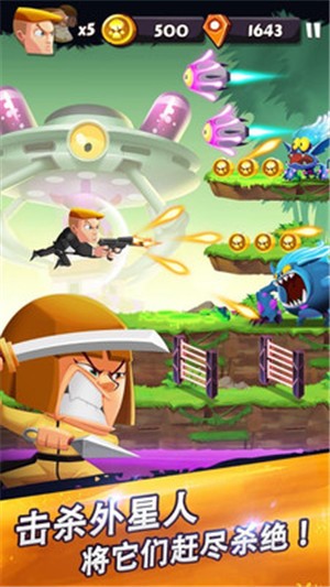 3、玩家可以控制超级英雄,消灭外星人,享受冒险射击的快感,体验紧张刺激的战斗过程。