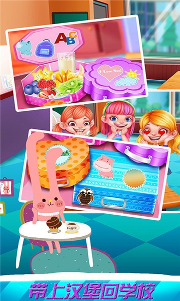 这款游戏不仅能让玩家在学校环境中学习制作汉堡,还能体验不同地点和环境的趣味。玩家可以学习各种肉类的烹调方法,并选择丰富多样的蔬菜和酱料进行搭配。游戏的主要任务是帮助小佩学习制作各种美味的汉堡,并经营好她的汉堡店。通过不断学习新的汉堡制作方法,玩家可以帮助小佩打造出最奇妙的汉堡店。游戏画面精致,采用卡通动漫风格,各种汉堡不仅美味,还非常好看,给玩家带来视觉和味觉的双重享受。
