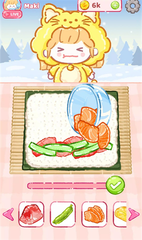 游戏的核心玩法围绕着寿司制作与吃播经营展开。玩家需要根据观众的反馈不断调整自己的制作策略,以满足不同观众的口味需求。随着游戏的进行,玩家可以解锁更多高级食材和制作工具,提升寿司的品质和创意。此外,玩家还可以通过装饰自己的寿司吧台和更换厨师服装,打造独特的游戏风格,吸引更多观众关注自己的吃播频道。