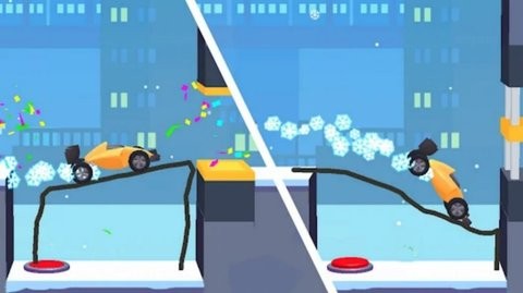 2、汽车随时都有可能翻车,玩家需要在合适的位置建造公路,让汽车能不断提速,快速抵达目的地;