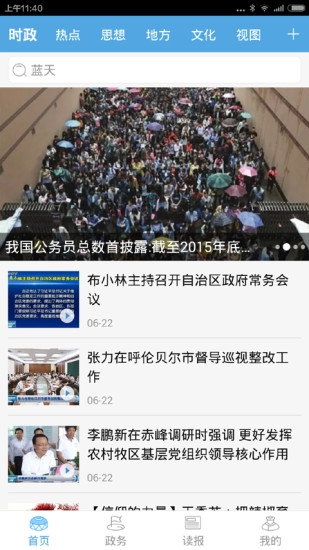 -软件内设置有新闻、政务、读报三大版块,满足用户对不同类型新闻的需求;