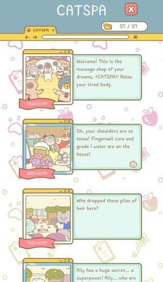 解锁和装饰更多的空间,包括主按摩室、休息室以及美发沙龙,打造一个功能齐全的水疗中心。开启当老板的职业生涯,雇佣各种猫猫精灵,为客人提供多种服务,从按摩到美容,应有尽有。你可以认真倾听客人和员工的话语,收集丰富的趣萌快照和故事,记录下每一个温馨的瞬间。此外,游戏还支持自定义装饰,让你可以根据自己的喜好,打造独一无二的水疗中心。
