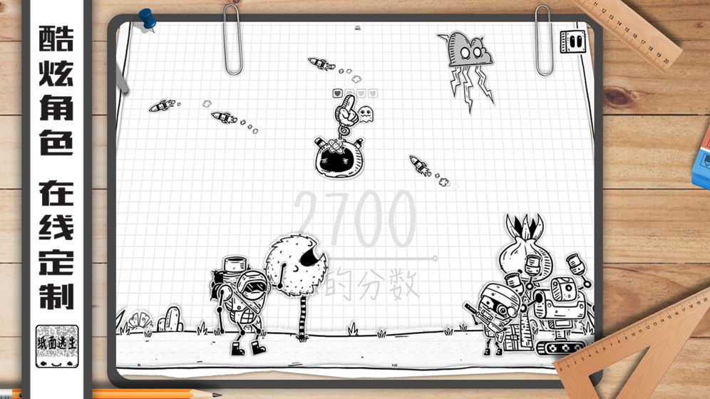 《纸面逃生》的故事发生在一个独特的方格纸星球上,这里是小外星人们世代居住的家园。然而,一群装备精良的外来入侵者突然降临,企图占领这个星球。面对强大的敌人,小外星人们并没有退缩,而是选择团结一致,在绝境中寻找生机。玩家将扮演这些小外星人的守护者,通过巧妙的策略和精准的操作,帮助它们抵御入侵者的进攻。游戏不仅考验玩家的反应能力,还需要灵活运用各种道具和技能,在危机四伏的战场上寻找生存之道。每一次成功防守都意味着离胜利更近一步,而每一次失败都将激励玩家重新思考战术,迎接新的挑战。