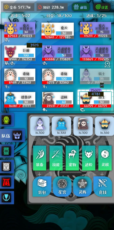 3、这个游戏一共有四个上阵位,随挑战层数解锁,一般前排放肉,后排放辅助和输出即可。游戏中的阵容搭配非常灵活,玩家需要根据战斗需求合理调整阵容。前排英雄主要负责吸收伤害,后排英雄则负责输出和辅助,玩家需要通过合理的阵容搭配,才能在战斗中取得胜利。