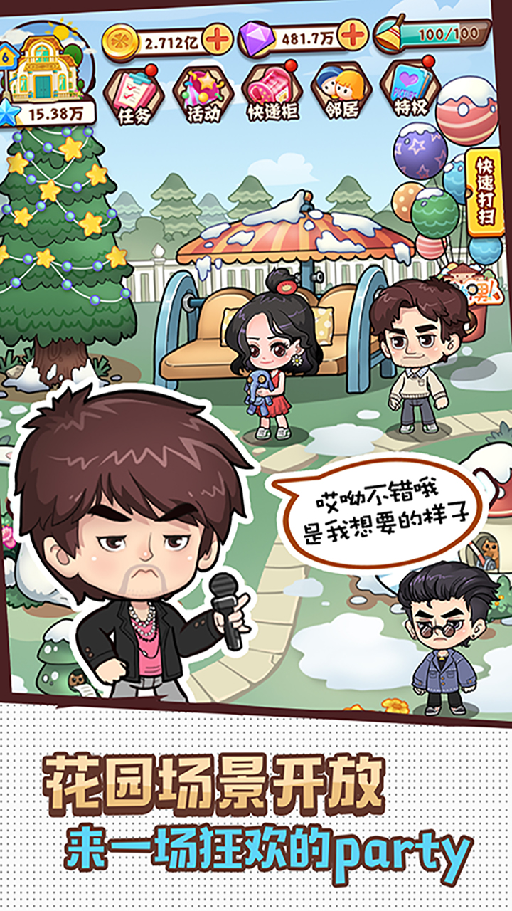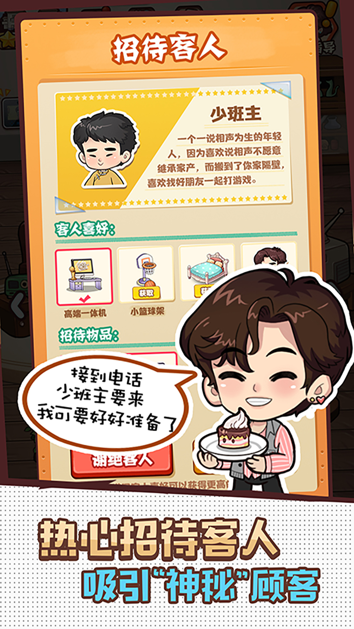 涛涛、周董等明星角色将加入你的民宿经营阵容,为你的客栈增添更多欢声笑语!游戏新增了圣诞节收藏品,让玩家在节日期间感受到浓厚的节日氛围。此外,游戏还新增了Loading页,玩家可以在家中开演唱会,享受音乐带来的快乐。为了提升游戏体验,新增了快速分配功能,玩家只需一键即可安排男人做家务,大大提高了游戏的操作便捷性。这些全新玩法不仅丰富了游戏内容,还为玩家带来了更多的互动乐趣,让经营民宿的过程更加有趣。