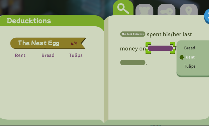 《鸭子侦探》是一款非常有趣的角色扮演解谜游戏,以可爱的卡通风格设计制作,带给玩家一个有趣的冒险解谜世界。此外,玩家将扮演一只鸭子侦探的角色,在各种不同的场景中寻找线索,结合故事来分析和演绎真相,喜欢推理和解谜的玩家现在来下载尝试一下吧。游戏中的每个场景都经过精心设计,充满了细节和隐藏的线索,玩家需要仔细观察和思考,才能发现其中的奥秘。游戏还提供了丰富的角色互动和对话选项,让玩家能够更深入地了解每个角色的背景和动机,从而更好地推理出真相。