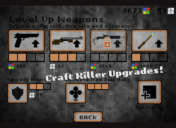 4、升级你的武器,通过收集敌人留下的方块,不断提升自己的战斗力;