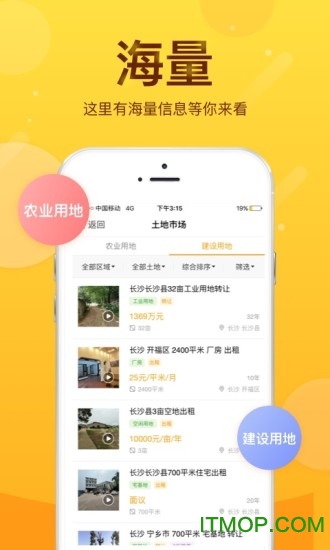 3.实时发布土地流转、土地出租出售、土地求租求购、土地转让转包以及土地招拍挂等信息,方便用户快速找到合适的土地资源。
