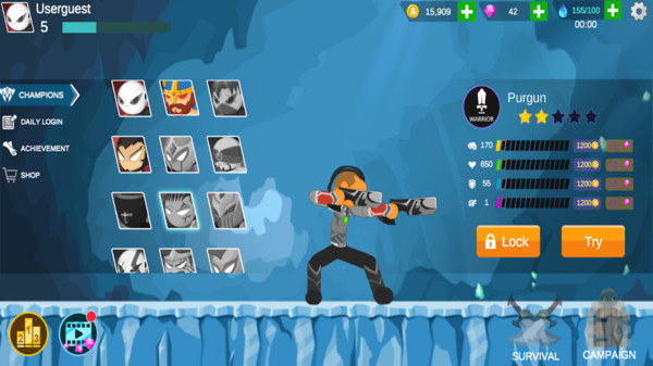 4、随着玩家等级的提升,更多的火柴人战士将被解锁。这些战士不仅初始数值更高,还拥有独特的技能,帮助玩家在战斗中取得优势。