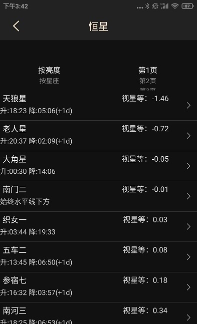 3.每日:每日功能提供了暮曙光时间、月出月落时间、行星出落时间以及可见星座和恒星的信息,帮助用户了解当天的天文观测条件。
