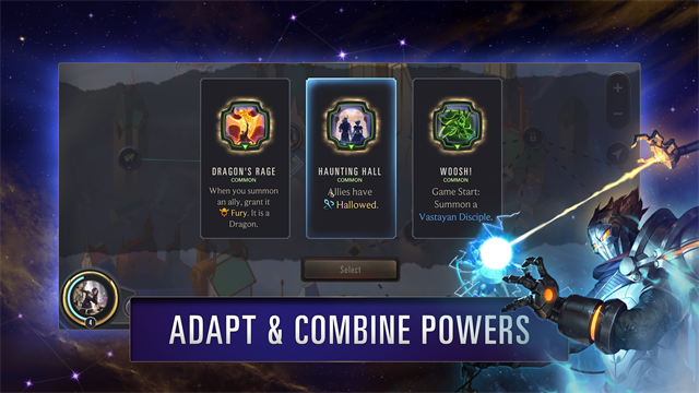 卡牌分为各种各样不同的类型,每个区域都有其独特的卡牌,玩家可以选择两个区域的卡牌组成一套完整的牌组。卡牌按照等级划分可分为普通、稀有、史诗以及特殊的英雄卡。每套牌组中同样的卡最多可选择三张。