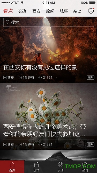 -首页、现场、乐活、空间四大板块:首页为用户提供最新的新闻资讯,现场板块聚焦实时热点,乐活板块关注生活娱乐,空间板块则为用户提供互动交流的平台,满足用户多样化的需求。