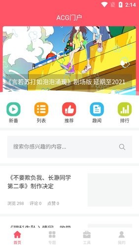 1、资讯:平台按分类显示动漫资讯列表,用户点击文字即可进入详细页面,进行点赞、分享、收藏和评论等操作,方便用户互动与交流。