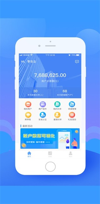 顺卡助手app官方最新版本是一款专为中小商户和企业设计的智能收款管理工具,旨在帮助用户轻松实现高效的财务管理和业务拓展。通过该应用,商户可以实时查看详细的收益情况,包括每月新增的商户和伙伴数量,全面掌握业务发展动态。此外,顺卡助手还支持在线报件和终端设备管理,帮助用户简化操作流程,提升工作效率。无论是个人用户还是企业用户,都能通过顺卡助手享受到便捷、安全、低成本的支付服务,助力业务快速增长。