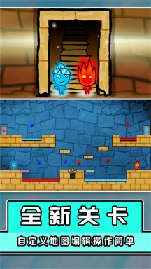 2、可爱的冰火人,卡通风格的艺术画面让人欲罢不能。游戏采用精美的卡通风格,角色设计可爱生动,画面色彩丰富,给玩家带来视觉上的享受。