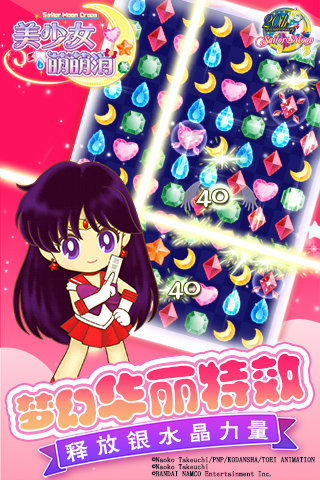 游戏玩法简单,匹配3个及3个以上的宝石即可消除相应元素。3个以上的宝石可以组成能量水晶,炫酷的消除特效让你目不暇接。随着剧情和游戏进程的发展,水手月亮、水手水星、水手火星、水手木星、水手金星等纷纷亮相。每个美少女战士都有独特的必杀技,释放必杀技,可获得超强消除效果哦~独创的人物培养系统,升级人物,让你的必杀技更霸气!此外,游戏还加入了多种特殊道具和技能,玩家可以通过合理使用这些道具和技能,轻松通过高难度关卡。