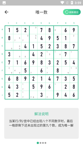 1.每个数字在每一行、每一列和每一个宫格中都只出现一次。这一规则是数独游戏的核心,通过反复练习,用户可以逐渐掌握这一规则,并在解题过程中更加得心应手。