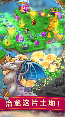 很久很久以前,在一个遥远的世界里,有一片土地失去了所有的生命,唯一的希望就是龙的神奇治愈力量能永远地治愈这片土地。将龙蛋、树木、珍宝、星星、神奇花朵、甚至是龙本身进行融合,你将得到强大的巨龙。将女神的雕像进行合成来解锁关卡并完成任务!收集赏金和各种物品来帮助你的巨龙成长,保护你的家园免受恶魔的攻击。这片土地曾经繁荣昌盛,但因为一场神秘的灾难,所有的生命都消失了。玩家将扮演一位勇敢的冒险者,通过合成与消除,唤醒沉睡的巨龙,恢复这片土地的生机。每一个关卡都隐藏着新的故事与挑战,等待你去探索与发现。