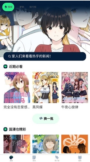 1、下载安装再漫画app。安装完成后,打开软件,进入主界面。