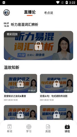 「用户推送」功能根据用户的学习进度和水平,智能推送个性化的学习内容,成为你的专属学习小贴士。「直播频道」被整合到底部导航栏中,用户可以随时加入直播课堂,与老师和同学互动,解决备考中的疑惑。「大纲词汇」功能新增至单词页面,帮助用户快速扩充词汇量,提升记忆效率。「听力解析」功能支持查看听力材料原文,方便用户对照学习,彻底解决听力难题。此外,app还提供错题集、学习报告等功能,帮助用户查漏补缺,全面提升备考效果。