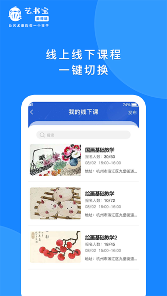 4、多种线上线下课程,可自由发布,方便为学生提供优质服务,满足不同学生的学习需求。