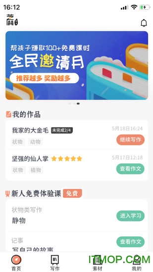 我家小孩用起App来比我还溜,听到里面的老师夸她写作技巧运用得真棒,还和我炫耀。终于有给小孩子写作文的软件了,期待开发更多功能!