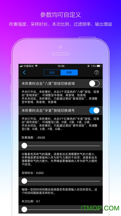 陶笛Ocarina提供了45个高品质陶笛音源,音域从小字组a到小字四组f4,覆盖近4个八度,满足不同音乐风格的需求。软件内置23种调式,包括#C、D、#D、E、F、#F、G、#G、A、#A、B、c、#c、d、#d、e、f、#f、g、#g、a、#a、b,默认设置为C大调,方便用户快速上手。此外,软件还提供高音、中音、低音三种陶笛音域选择,默认为中音域陶笛,适合大多数演奏场景。内置的气震音效果让音乐更加自然流畅,赋予陶笛音色圆润丰满的美感。吹奏时,用户可以通过调整吹气力度或嘴巴与麦克风的距离来控制音量,未吹奏时则可通过点击按钮或滑动滚轮进行调号和音域调整,操作简单直观。