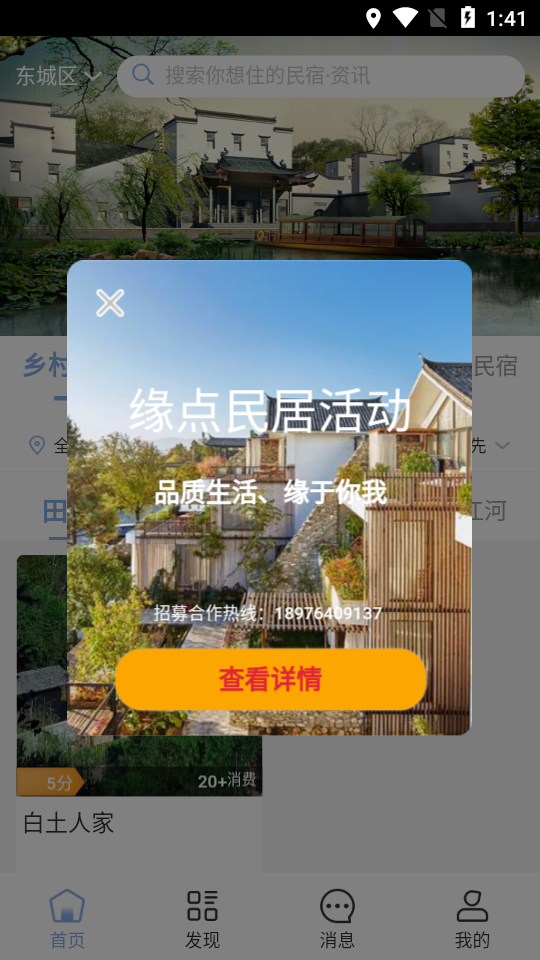 缘点民居app的软件特色丰富多样,首先,周边游民宿特惠活动让用户能够以更优惠的价格享受高品质的住宿体验。其次,一键筛选功能让用户能够快速找到符合自己需求的房源,节省了大量搜索时间。此外,民宿详情页面设计简洁明了,用户可以一目了然地查看房源的详细信息,包括房间设施、周边环境等,帮助用户做出更明智的选择。这些特色功能使得缘点民居app在众多民宿预定平台中脱颖而出,成为用户的首选。