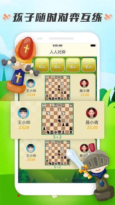 5.在线对弈:支持双人、同学、人机对弈,慢棋快棋具备超强趣味性,让孩子在实战中不断提升自己的象棋水平。