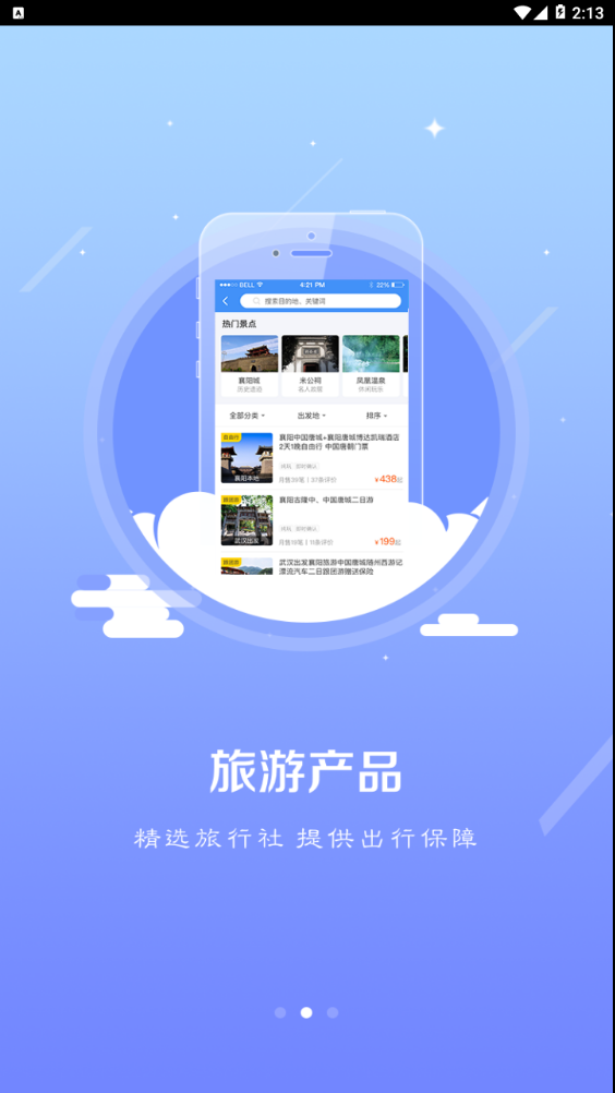 【旅游产品】襄阳旅游中心app精选襄阳市内合法合规的旅行社入驻平台,为广大用户提供质量可靠、服务优质的旅游产品。无论是短途周边游还是长途深度游,用户都能在app中找到丰富的旅游线路和套餐,满足不同需求。所有旅游产品均经过官方认证,确保安全性和可靠性,让用户放心预订,安心出行。
