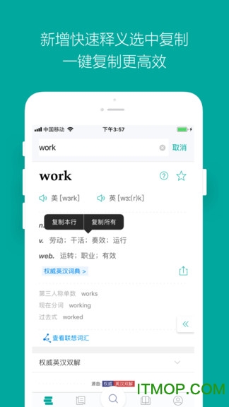 支持一键复制粘贴翻译。最为贴近人工化的机器翻译功能,告别晦涩,翻译结果更为优美准确流畅。无论是长篇文章还是短句,微软必应词典都能为您提供高质量的翻译服务,帮助您更好地理解和掌握英语。