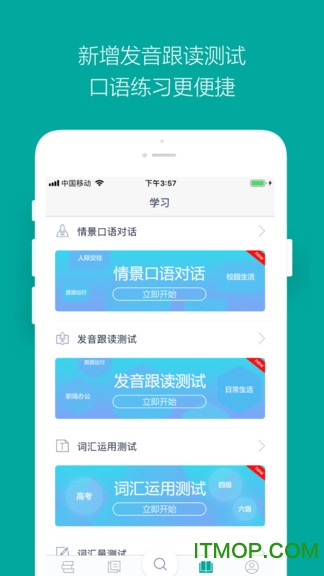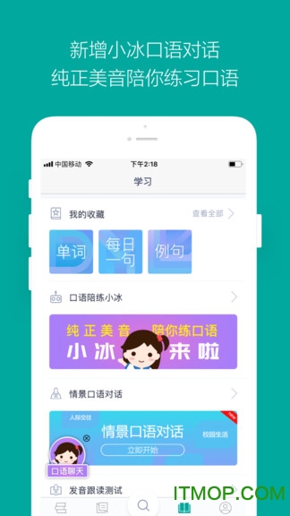 丰富的英语题库,实时口语打分,全面检验口语学习成效。通过“我爱说英语”功能,您可以进行口语练习,系统会根据您的发音、语调和流利度进行实时打分,帮助您发现并改进口语中的问题。无论是日常对话还是专业演讲,您都能在这里找到适合自己的练习内容。