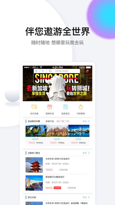 【出行】:享受其他旅游项目八-九折优惠,永享市场性价比之最的旅游项目优惠,只要壹伴游平台上的旅游线路,会员即可享受可观的优惠。壹伴游app的出行优惠为用户提供了极大的便利,无论是国内游还是国际游,用户都能以最优惠的价格享受到高品质的旅行服务。这一优惠政策不仅节省了用户的旅行费用,还确保了用户能够享受到更多的旅行体验。