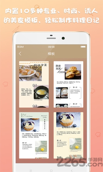 1.内置10多种专业、时尚、诱人的美食模板,轻松制作料理日记,满足不同用户的需求。