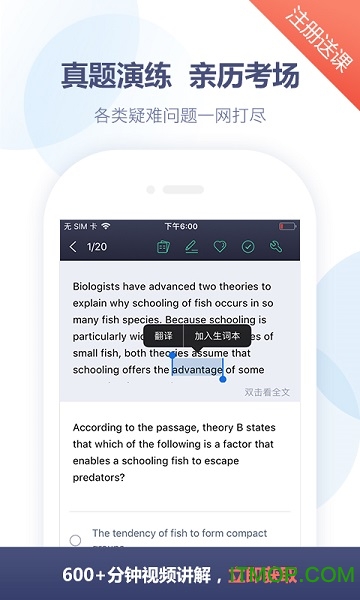 生词查询:刷题过程中难免会遇到生僻词汇,学生只需长按屏幕上的单词,即可录入生词本或者翻译,对生词进行深度学习。这一功能帮助考生快速积累词汇量,提升语言能力。