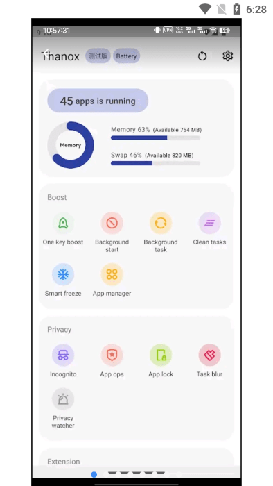 thanoxpro是一款功能强大的系统管理工具,专为安卓设备设计,提供了全面的系统优化和隐私保护功能。它不仅可以帮助用户管理应用的权限,还能有效控制后台启动和运行,从而减少资源占用,提升手机性能。此外,thanoxpro还内置了情景模式功能,用户可以根据不同场景自定义系统行为,例如在特定时间自动冻结应用或调整网络设置。最值得一提的是,它还支持“移花接木”功能,允许用户将某些应用的权限或功能转移到其他应用上,实现更灵活的系统管理。无论是日常使用还是深度优化,thanoxpro都能满足你的需求。