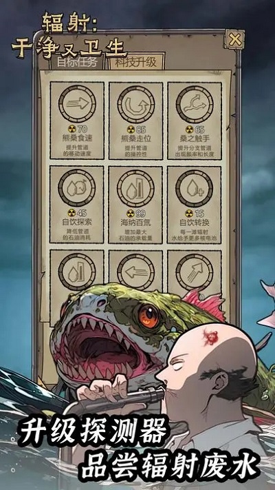 每次探险结束后,玩家可以使用获得的核电池为科技进行升级。升级后的天赋系统种类繁多,效果强大,能够显著提升探测器的性能。例如,增加核废水的吸收速度、提升核电池的转化效率等。这些天赋加成让玩家在后续探险中更加游刃有余,轻松应对各种挑战。