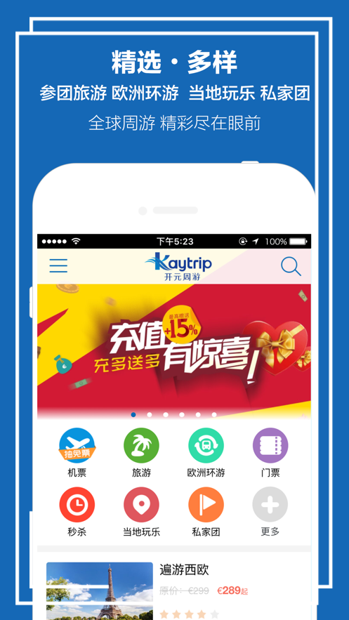 开元周游app提供丰富的旅游产品,包括参团旅游、欧洲环游、当地玩乐、私家团等,满足不同游客的需求。无论是经典路线还是个性化定制,用户都能找到适合自己的旅行方式。