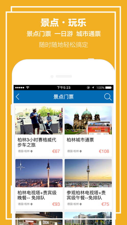 应用内提供景点门票、一日游、城市通票等服务,用户可以随时随地轻松预订,享受无忧的旅行体验。