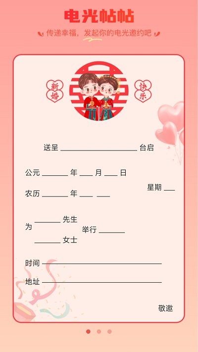 3、支持制作不同类型的请帖,满足不同场合需要。无论是婚礼、生日、聚会,还是其他特殊场合,电光帖帖都能提供相应的模板和功能,确保您的邀请函既美观又实用。