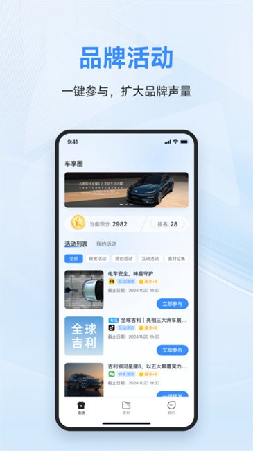 车享圈app官方版是一款专为汽车爱好者、营销人员及创作者打造的一站式素材平台。它集成了丰富的品牌素材库,涵盖全系车型的高清图片、视频等正版资源,帮助用户轻松获取所需素材。无论是进行营销推广、活动策划,还是创作个性化内容,车享圈都能提供强大的支持。用户可以在线发布推广内容,实时查看传播数据,并参与最新活动,确保营销效果最大化。此外,智能分类检索和批量下载功能让素材获取更加高效,素材库的及时更新也让用户始终走在行业前沿。