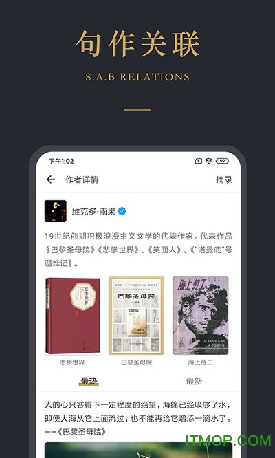 2、软件专为用户打造了一个心灵的港湾,阅读体验便捷流畅,用户还可以一键收藏喜欢的句子,免费且实用,支持阅读背景色的个性化设置。