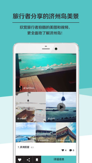 2、游客亲自上传的济州岛风景照片,无需您亲自搜索,我们为您筛选出SNS社交网站上的精彩实时济州岛旅行照片,让您提前感受济州岛的魅力;