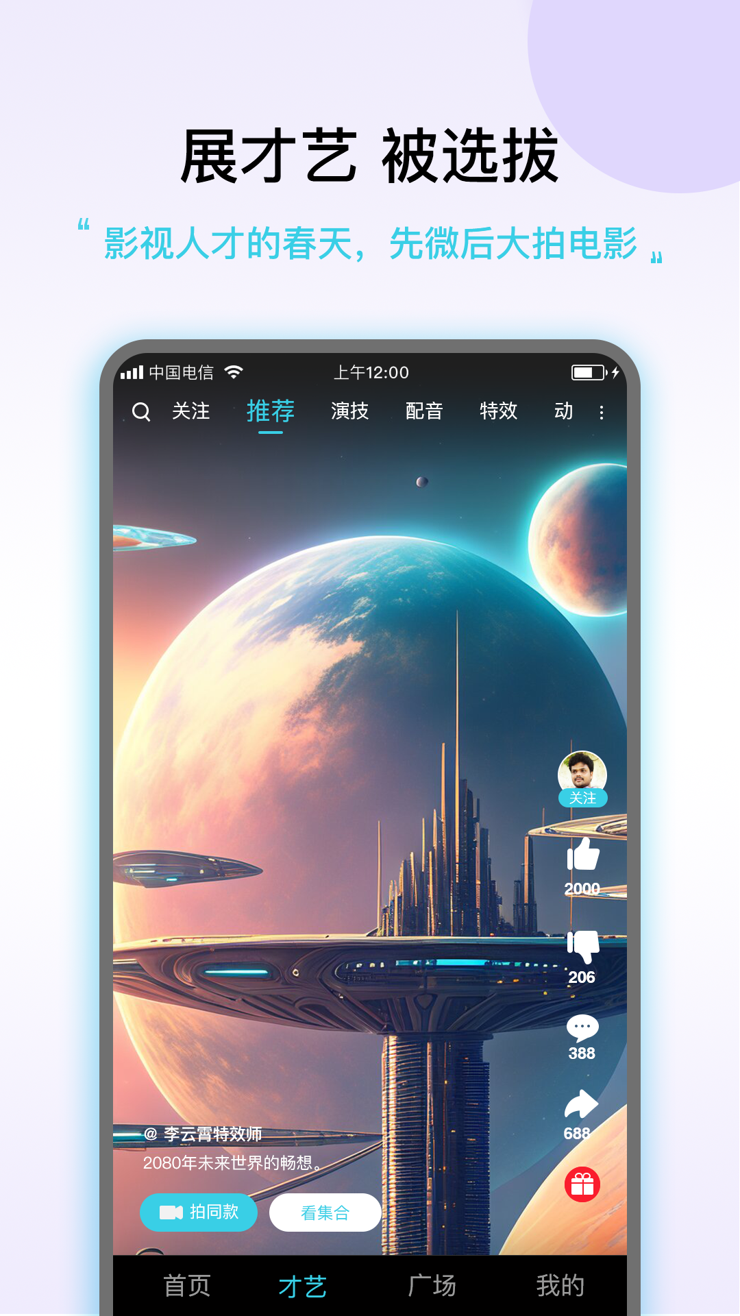 在必影app上,用户可以发布自己的演技、配音、动画、舞蹈、化妆、特技等影视才艺类短视频。才艺出众者不仅会获得粉丝用户的点赞和打赏,还有机会被各大影视公司的导演和制片人选拔签约,走上星途。平台为影视人才提供了一个展示自我、实现梦想的舞台。