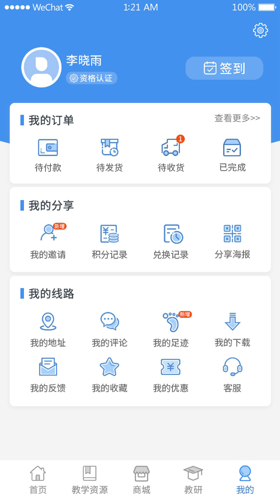 教学资源、商城、教研、我的。教学资源板块提供了丰富的课件和教案下载,帮助教师更好地备课和教学;商城板块汇集了各类图书和文具礼品,满足用户的多样化需求;教研板块则为教师提供了一个交流和分享教学经验的平台;我的板块则集中了用户的个人信息、订单记录和会员权益,方便用户管理和查看。