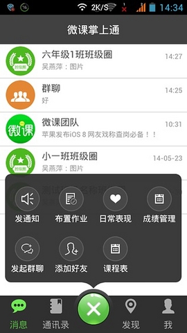 微课掌上通为教师和家长分别设计了不同的客户端界面,功能区分清晰,一目了然。教师端主要包括布置作业、发送通知、发放成绩、课程表、好友聊天等功能,而家长端则包括实时接收通知、作业、日常表现,查看孩子课程表等功能,满足不同用户的需求。