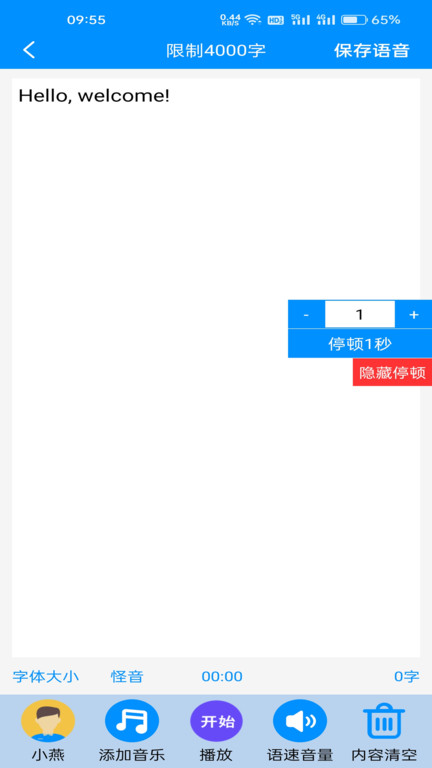 ·可以设置朗读停顿,让转出来的语音更加完美,符合用户的个性化需求。