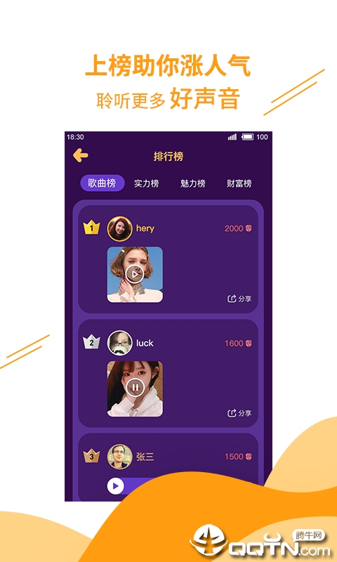 【手机K歌】随时随地,打开手机就能唱。歌声里app支持离线模式,用户可以在没有网络的情况下也能享受K歌乐趣。同时,app还提供了丰富的伴奏资源,满足不同用户的音乐需求。【K歌交友】排位赛快速匹配,跟天南地北的朋友一起嗨翻天。通过智能匹配系统,用户可以快速找到与自己音乐品味相似的朋友,建立深厚的音乐友谊。【自建房间】邀请好友玩转歌声里。用户可以创建专属的K歌房间,邀请好友加入,享受私密的K歌时光。【淘汰机制】拼歌艺、听唱功,享受站在顶点的荣耀。通过淘汰赛模式,用户可以挑战自己的极限,争夺K歌之王的称号。【发布分享】一键发布,一键分享。用户可以将自己的演唱作品快速分享到社交平台,让更多人欣赏到自己的音乐才华。【比赛打榜】歌曲榜、实力榜、魅力榜,上榜助你涨人气。通过参与各种榜单,用户可以提升自己的知名度,成为K歌界的明星。【全站广播】特色礼物全站广播,你就是站里最靓的崽。通过全站广播功能,用户可以展示自己的独特魅力,吸引更多粉丝的关注。【玩法】想一个人默默的唱还是跟朋友一起嗨,都由你决定。歌声里app提供了多种玩法,满足不同用户的需求,让每个人都能找到属于自己的K歌方式。