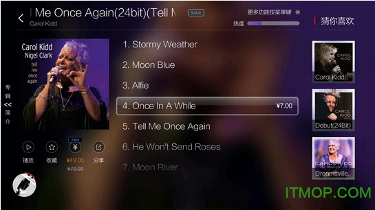 精选了艺术价值高、录音效果出色的发烧唱片,提供24bit母带数字专辑,确保每一首歌曲都能呈现出最佳的音质效果。无论是古典音乐、爵士乐还是流行音乐,这里都能找到您喜欢的曲目。